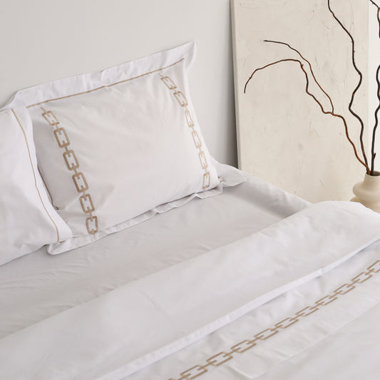 Bej Zincir İşlemeli Nevresim Takımı