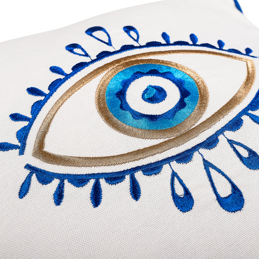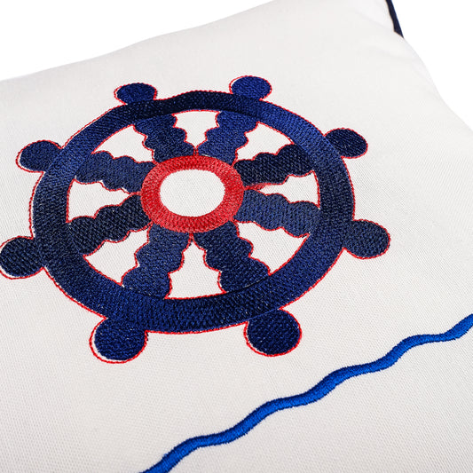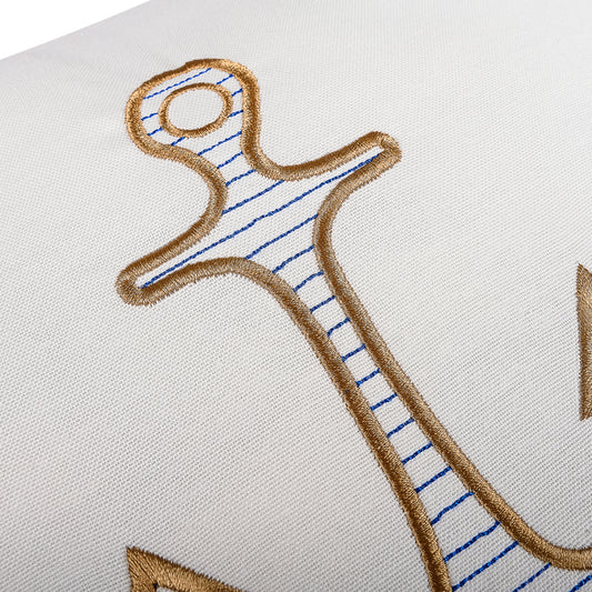 Beyaz Çıpa İşlemeli Kırlent Kılıfı