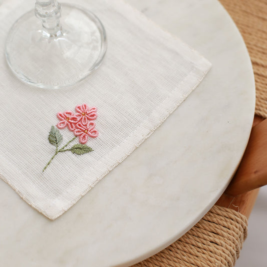 4'lü Set Pembe Çiçek El İşlemeli Kokteyl Peçete