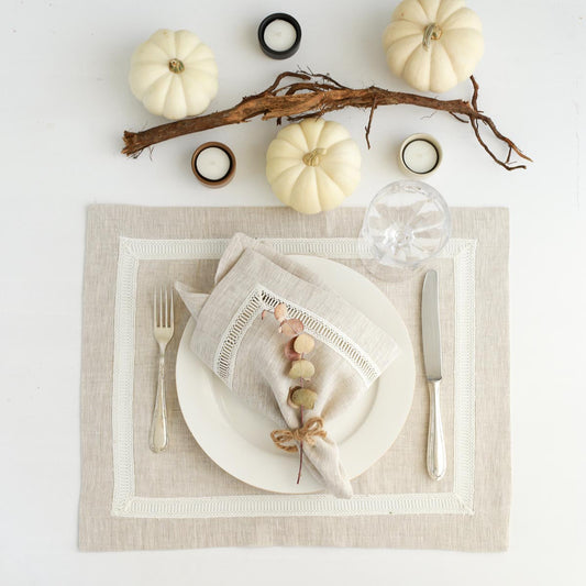 2'li Set Beyaz Pikolu Vintage Keten Peçete