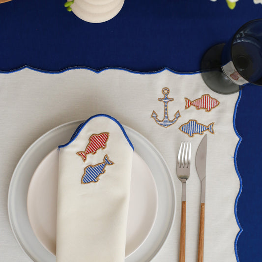 2'li Set Balık İşlemeli Pamuk Mavi Peçete