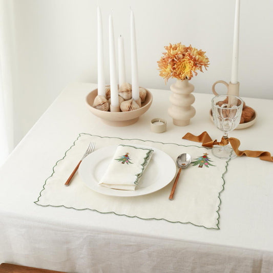 2'li Set Çam Ağacı İşlemeli Keten Peçete