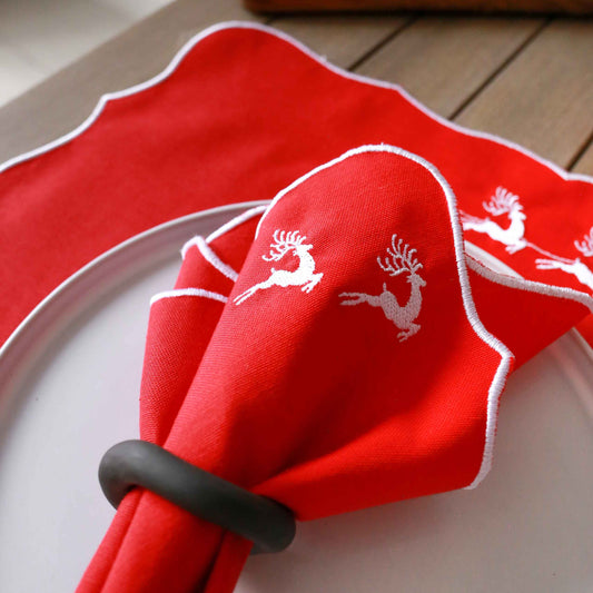 2'li Set Kırmızı Zincir Bordürlü Keten Peçete