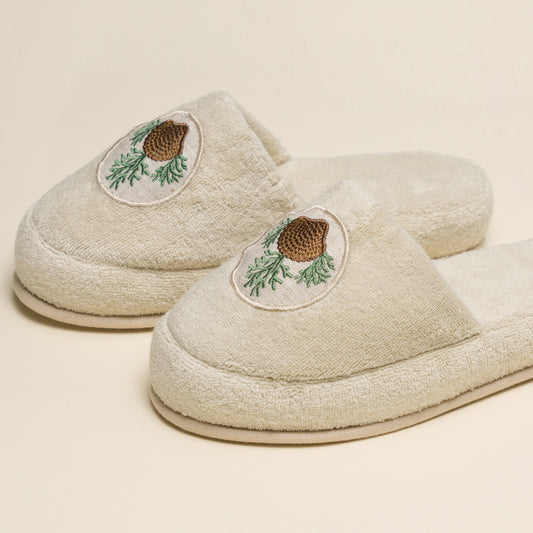 Turkuvaz Mercan İşlemeli Pamuk Banyo Terliği