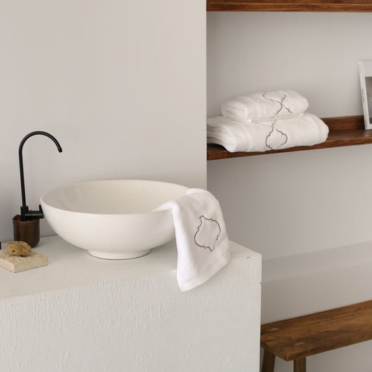 Beyaz Zincir İşlemeli Pamuk Vücut Havlusu