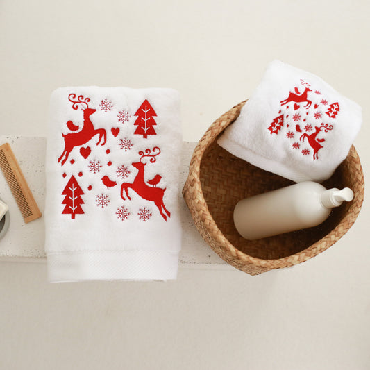 Noel Süsü İşlemeli Pamuk Yüz Havlusu