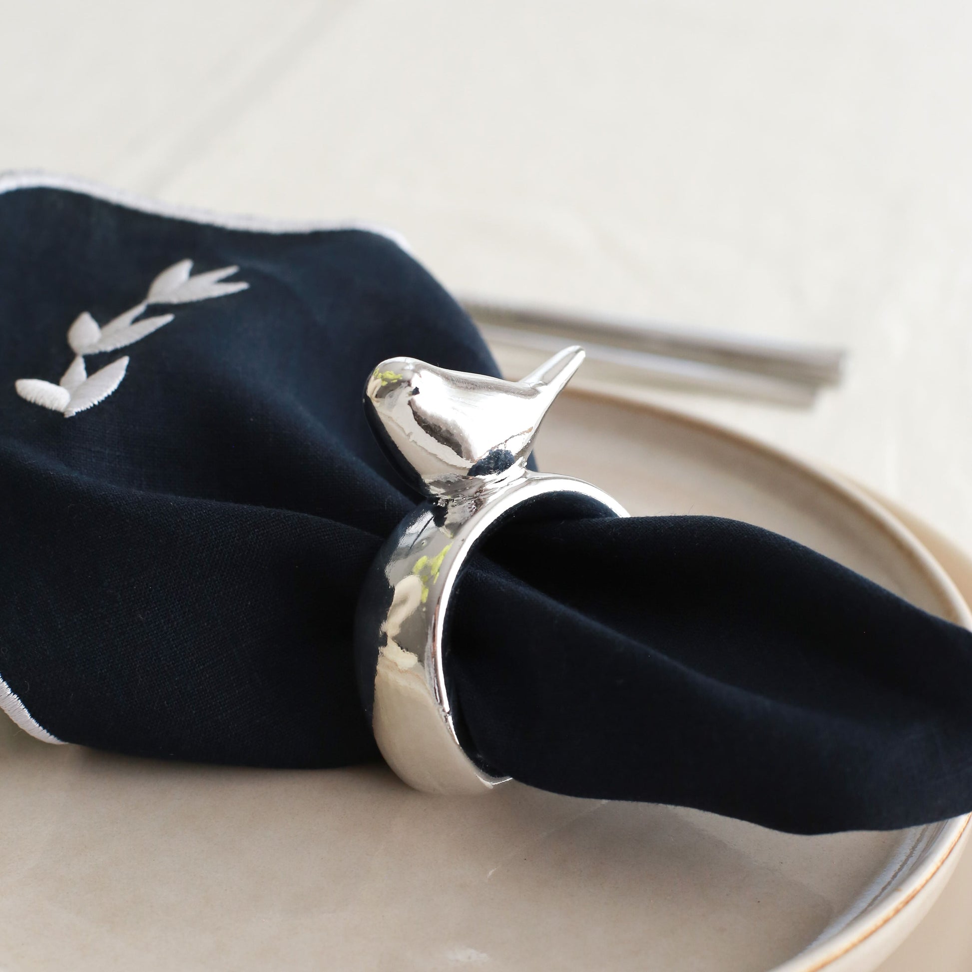 2'li Set Set Gümüş Kaplama Kuş Temalı Peçetelik