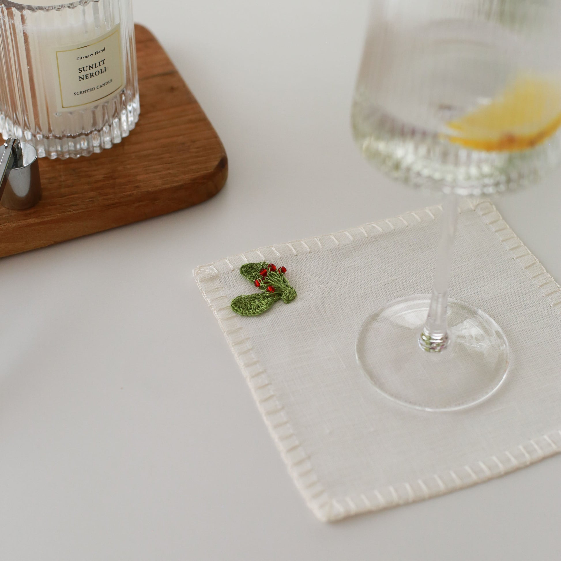 4'lü Set Kiraz El İşlemeli Kokteyl Peçete