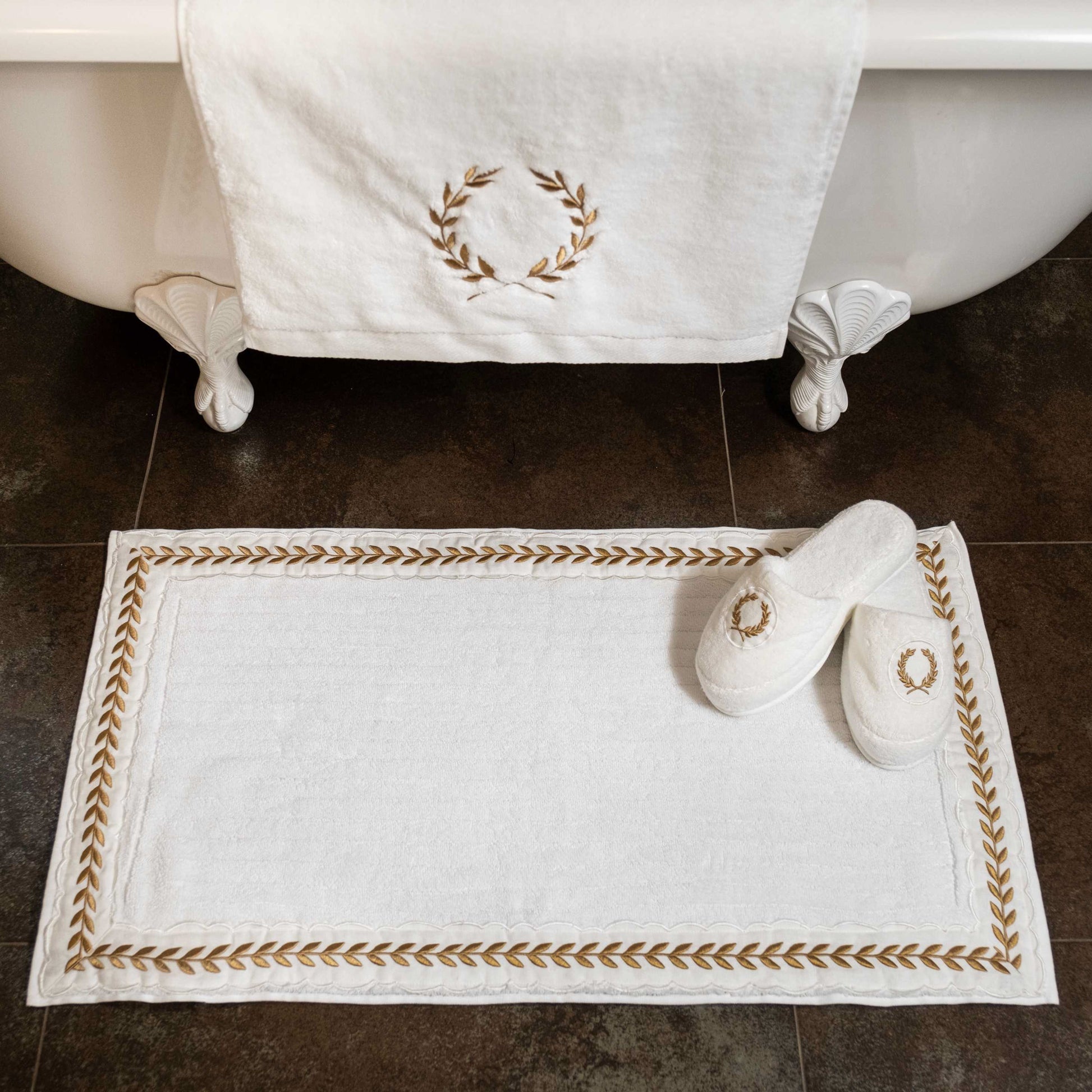 Altın Yaprak İşlemeli Pamuk Ayak Havlusu