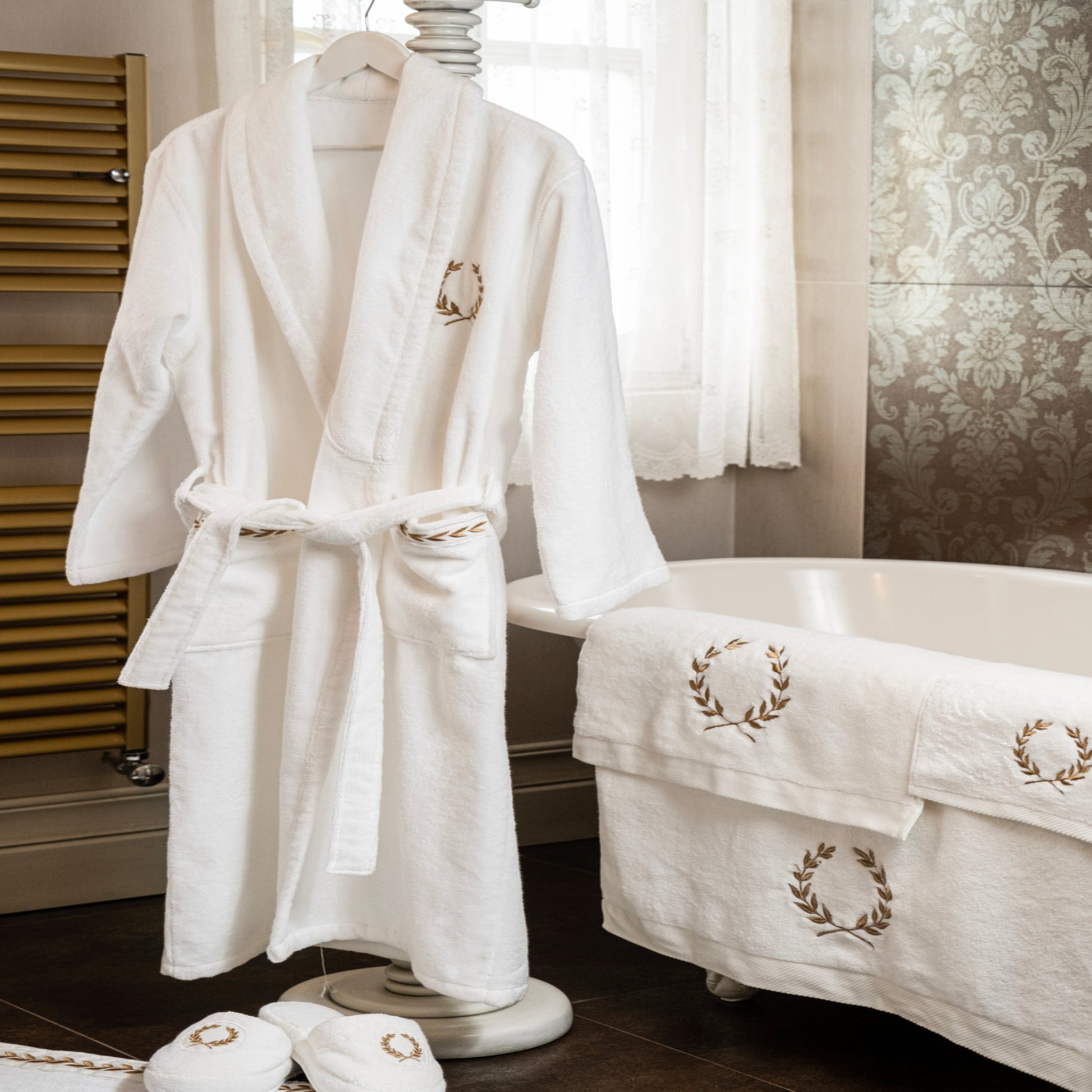 Altın Yaprak İşlemeli Pamuk Bornoz
