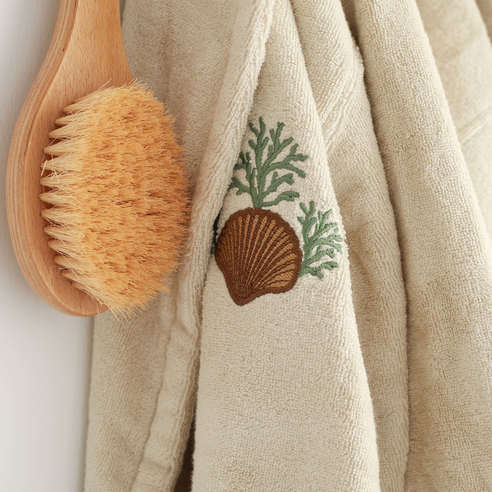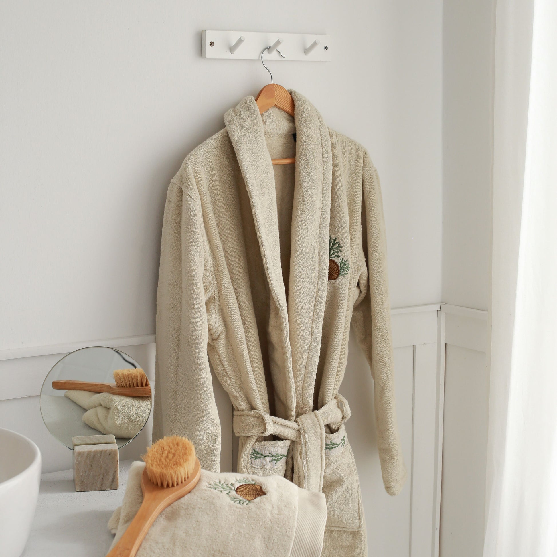İstridye İşlemeli Pamuk Bornoz