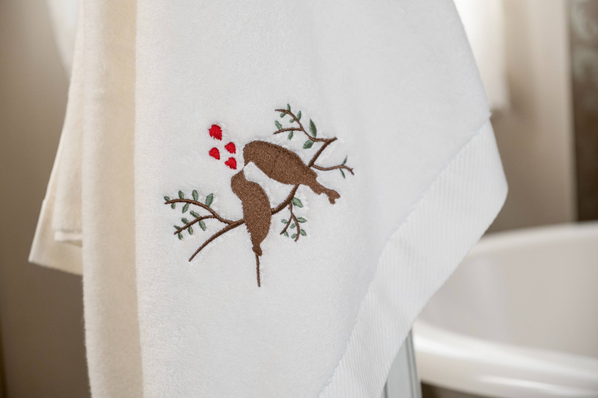 Kuş İşlemeli Pamuk Vücut Havlusu