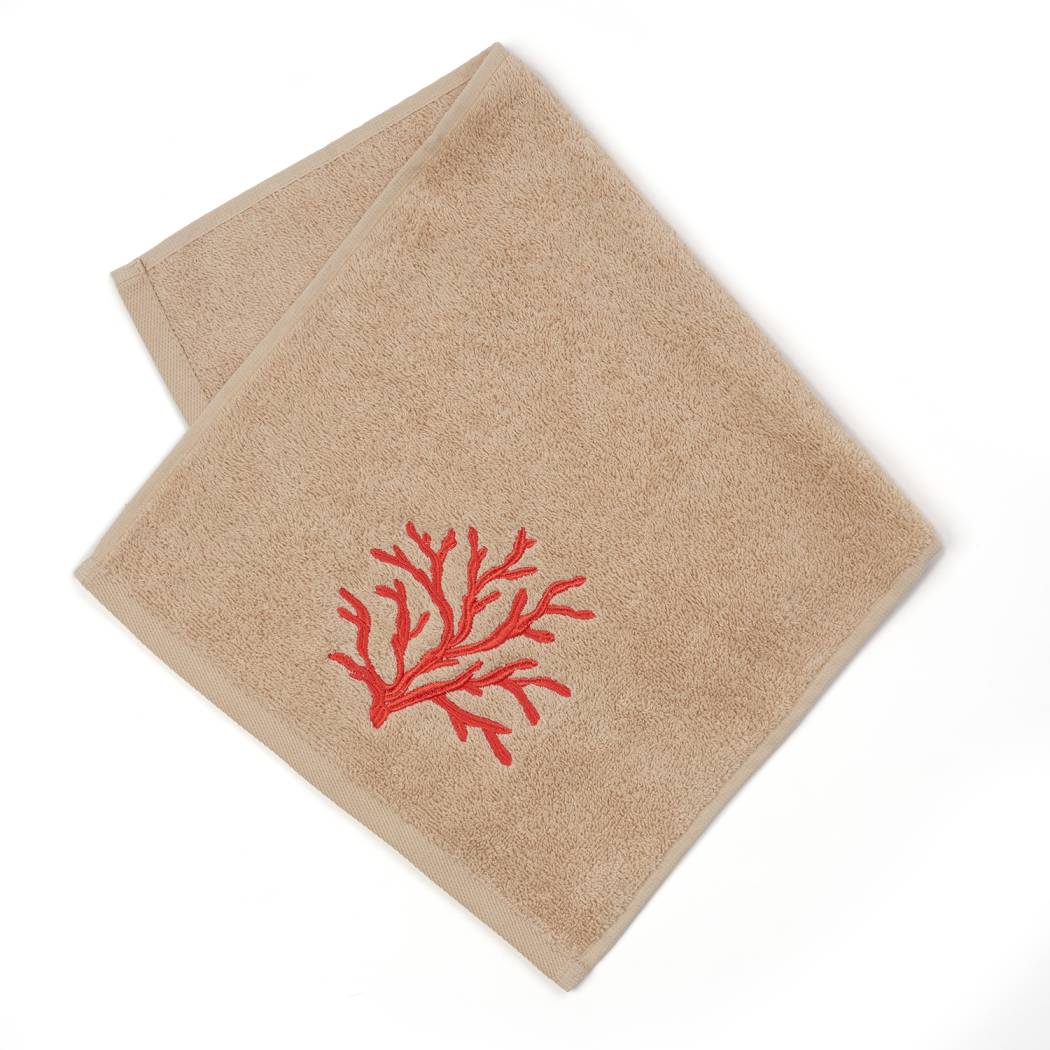 Kırmızı Mercan İşlemeli Yüz Havlusu
