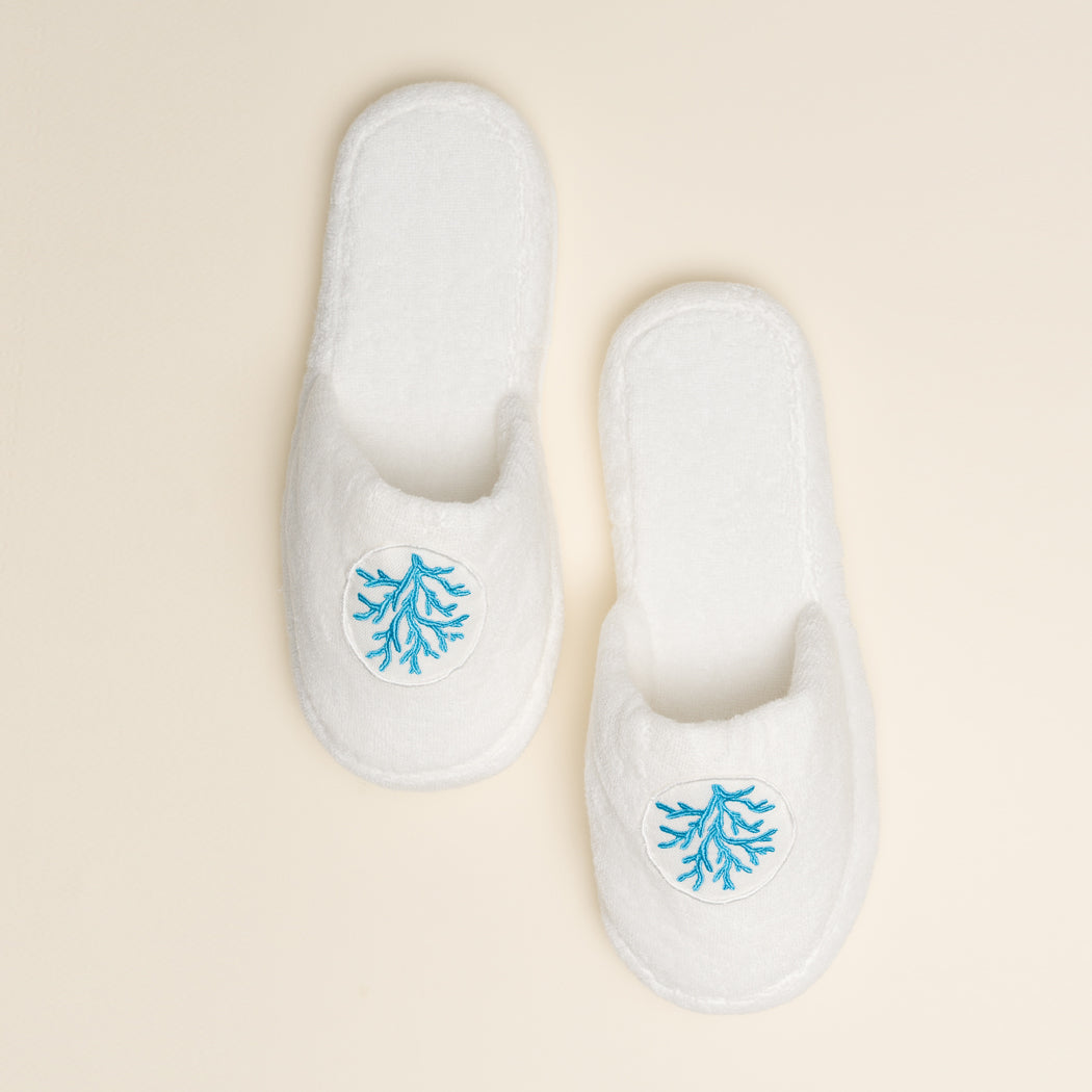 Turkuvaz Mercan İşlemeli Pamuk Banyo Terliği