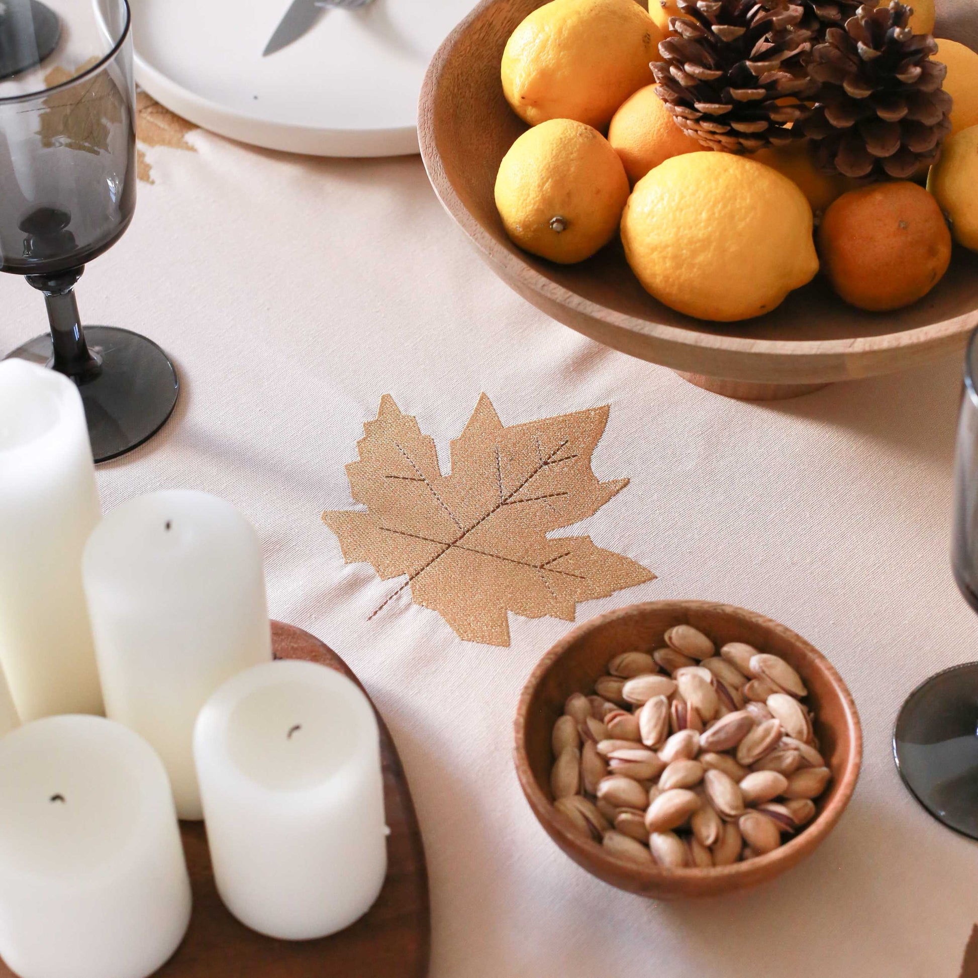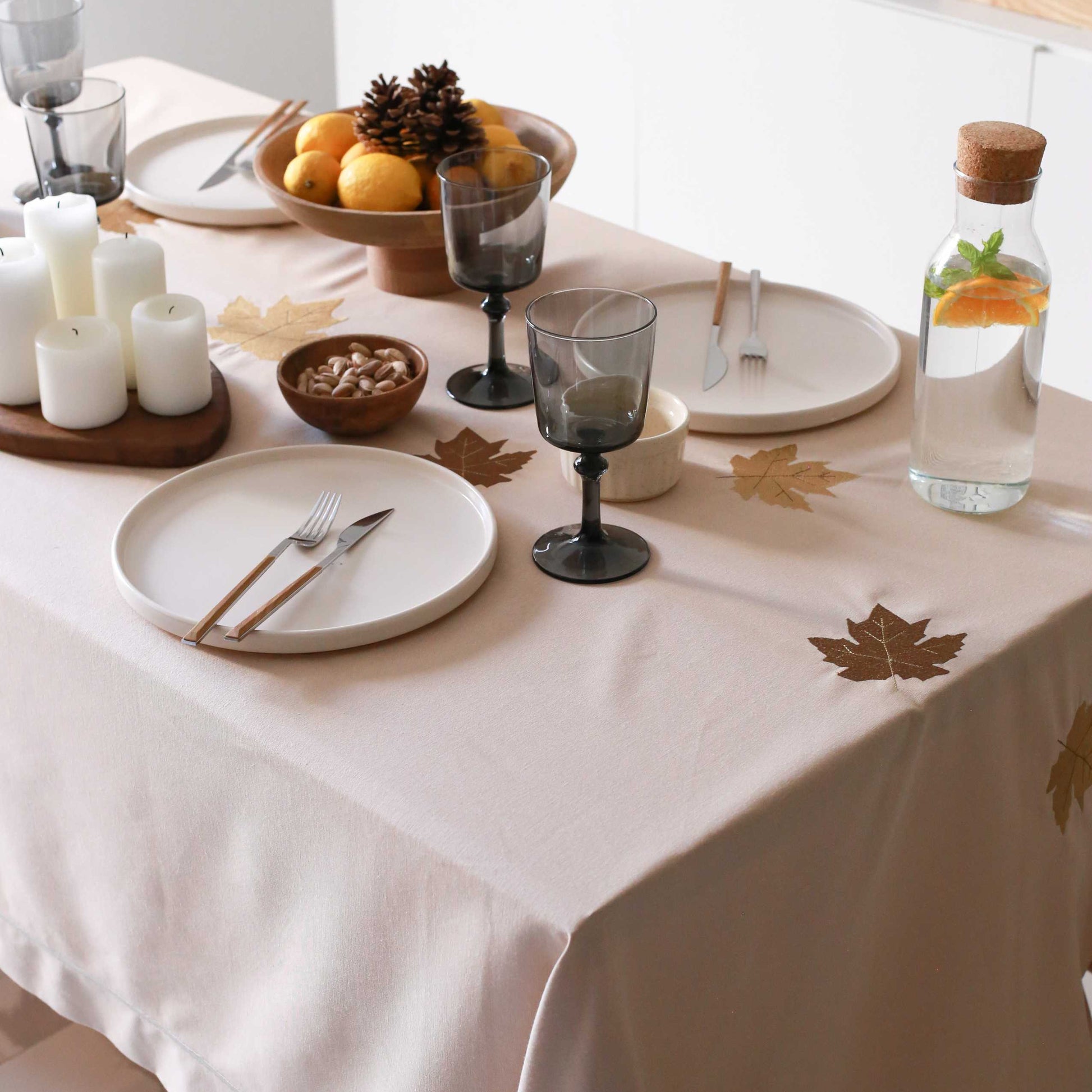 Yaprak İşlemeli Pamuk Masa Örtüsü